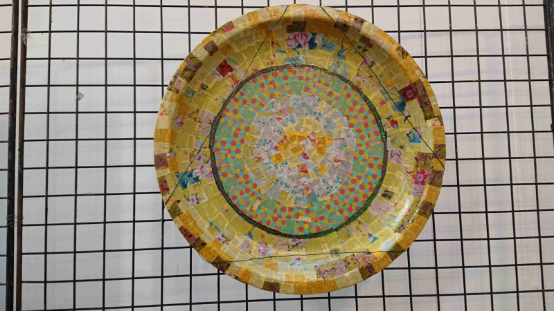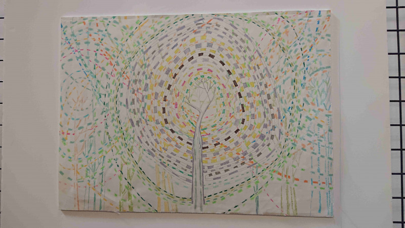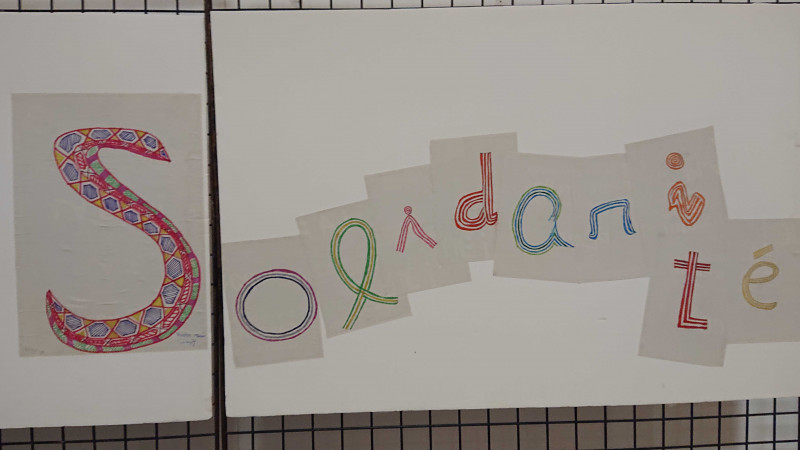 Une oeuvre de cinq mètres de longueur peinte par les stagiaires de formation intitulée "Avis transversal et universel" a été exposée.